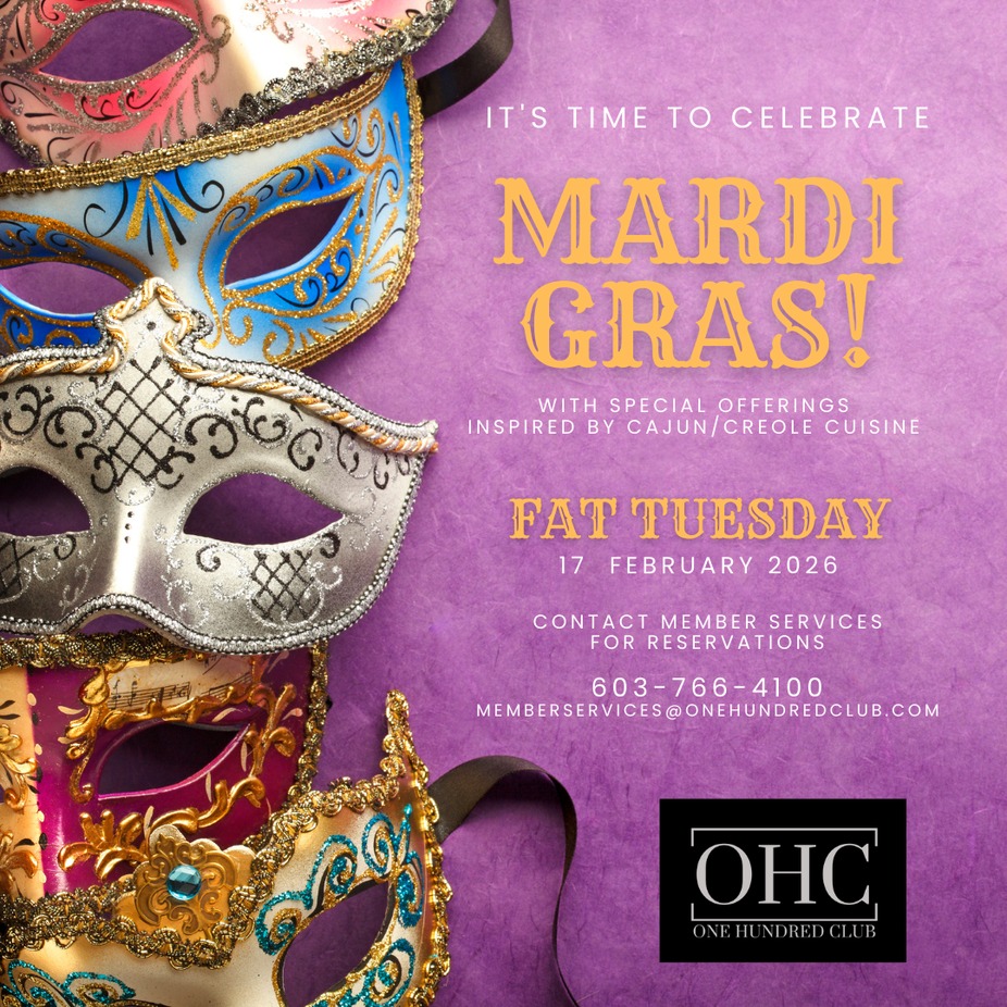 Let the spirit of Mardi Gras warm the room, lift your glass, and turn an ordinary Tuesday into something special! See you at the Top! Laissez les bons temps rouler—Seacoast style.